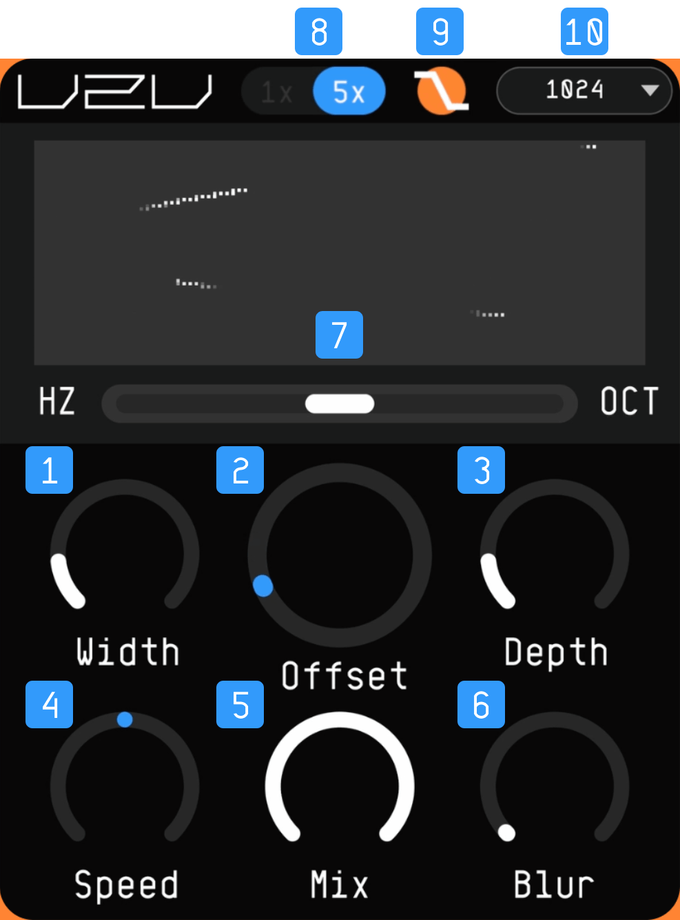 UZU flips the model. It operates in the frequency domain using an FFT (Fast Fourier Transform), allowing up to 8192 notches, a scale traditional phasers simply can’t reach. This way, notches are sharp, bubbly and are just how we think phasers should sound